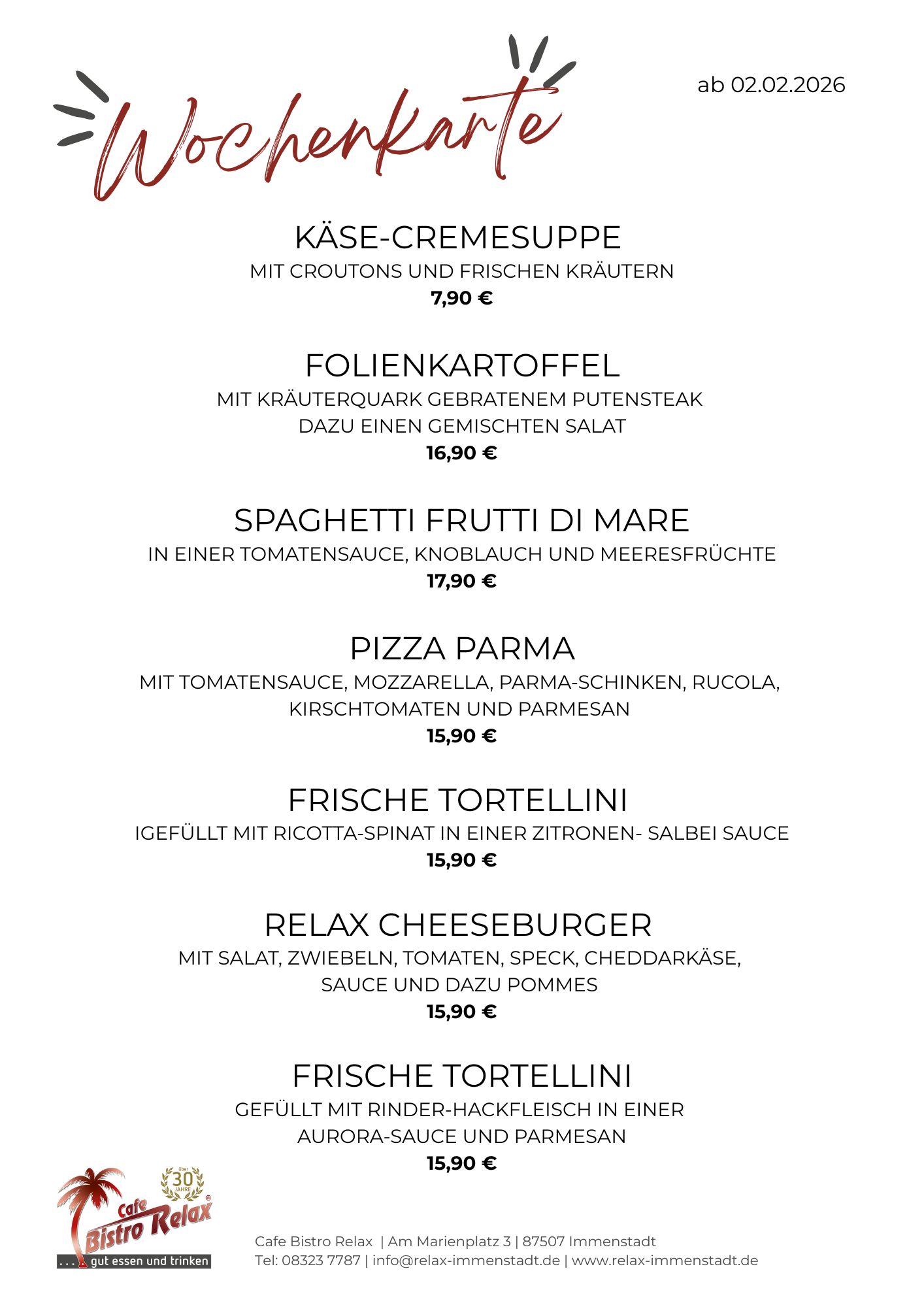 Aktionsangebote im Bistro Relax